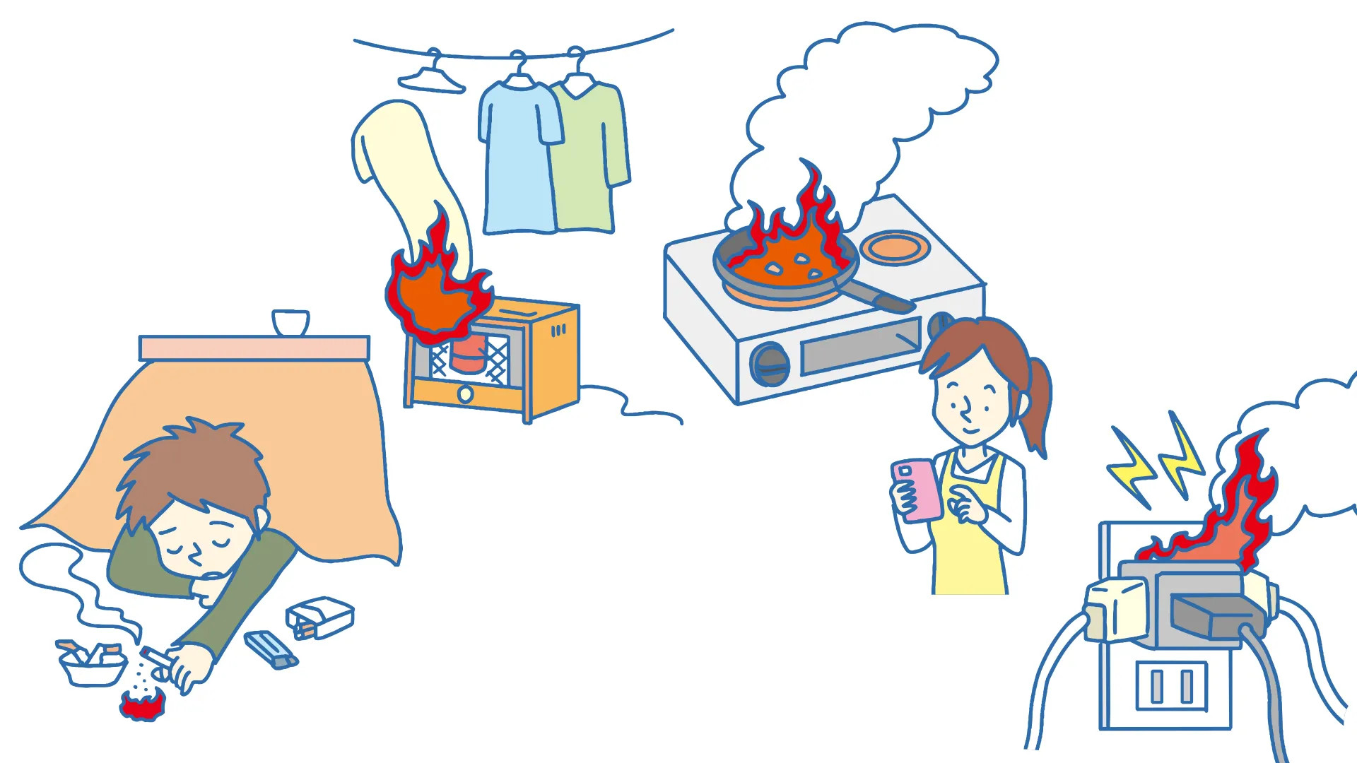 火災の発生を防ぐために、次の4つの習慣を守りましょう。
