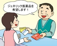 ジェネリック医薬品を希望する場合、病院・診療所・保険薬局で医師・薬剤師にそのことを伝えてください。医師に直接言いにくいのであれば、受付などで相談するのもいいでしょう。診察券あるいは保険証に、市町村や協会けんぽ及び健康保険組合が配布している「ジェネリック医薬品希望シール」を貼付したり、又は「ジェネリック医薬品希望カード」(下図参照)を受付に提示したりする方法もあります。