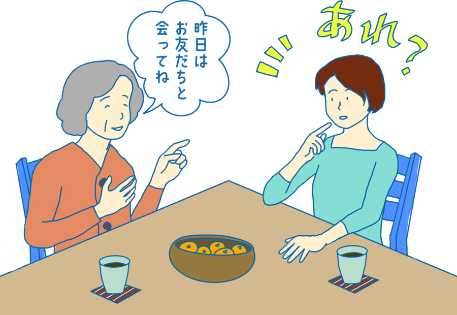 もの忘れがひどい今切ったばかりなのに、電話の相手の名前を忘れる。同じことを何度も言う・問う・する。しまい忘れ置き忘れが増え、いつも探し物をしている。財布・通帳・衣類などを盗まれたと人を疑う。判断・理解力が衰える料理・片付け・計算・運転などのミスが多くなった。新しいことが覚えられない。話のつじつまが合わない。テレビ番組の内容が理解できなくなった。時間・場所がわからない約束の日時や場所を間違えるようになった。慣れた道でも迷うことがある。人柄が変わる些細なことで怒りっぽくなった。周りへの気づかいがなくなり頑固になった。自分の失敗を人のせいにする。「このごろ様子がおかしい」と周囲から言われた。不安感が強いひとりになると怖がったり寂しがったりする。外出時、持ち物を何度も確かめる。「頭が変になった」と本人が訴える。意欲がなくなる下着を替えず、身だしなみを構わなくなった。趣味や好きなテレビ番組に興味を示さなくなった。ふさぎ込んで何をするのもおっくうがり、いやがる。